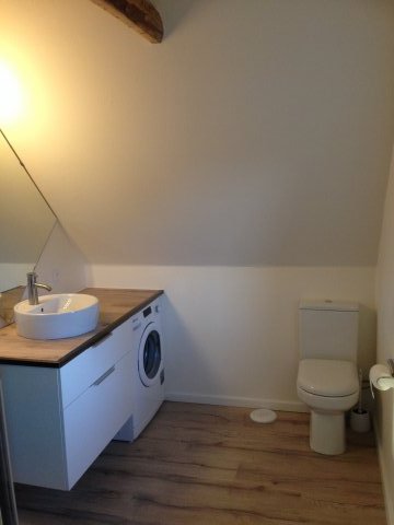 Første Sal: Tre charmerende værelser, et yderligere badeværelse med toilet, og et stort fællesrum, der tilbyder fleksible anvendelsesmuligheder.
